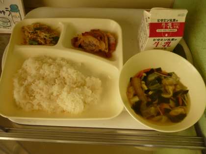 7月7日(月)の給食は、ごはん・牛乳・豚肉のしょうが焼き・五目汁・ツナと野菜の炒め物です。
