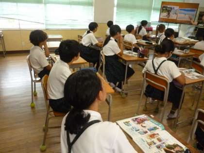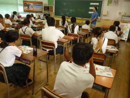 6年 地球に住むわたし 公開日 2025/07/08 更新日 2025/07/08 6年 6年1組では英語科「地球に住むわたし」というテーマで、英語でのスピーチが大型テレビから流れてきます。正確にヒアリングできて、「I’m good at 〇〇.」「I have a lot of beautiful island.」のように、最後まで受け答えできたでしょうか。 いいね(0)