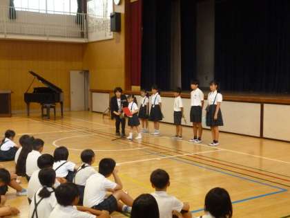 終業式では、1学期を振り返り、1学期にがんばったことやできるようになったことを発表しました。