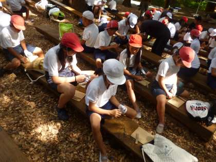 林間学習(5年)13 公開日 2025/07/24 更新日 2025/07/24 5年 次は「竹トンボ」作りです。 まず軸になる部分を細く削ってから、羽の両端を斜めに削っていく、根気のいる作業です。上手に削れたでしょうか。 いいね(0)