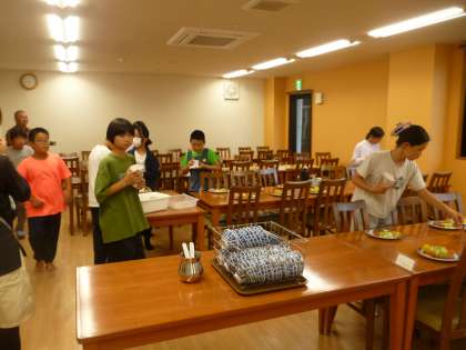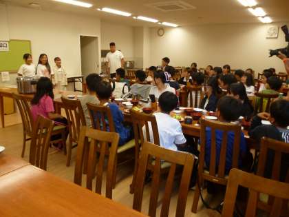 夕食の時間です。ハンバーグ定食でした。美味しかったのか、多くの児童がおかわりをしていました。
