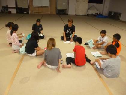 就寝前、室長会議の様子です。1日の反省と次の日の予定を確認しました。