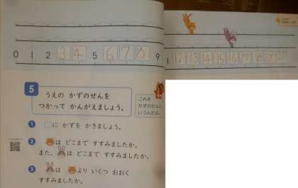 1年 かずのせん 公開日 2025/09/01 更新日 2025/09/01 1年 1年2組では算数科「10より おおきい かず」を学習しています。本時では、次のような数の線について、□に当てはなる数字を入れて、ネコやウサギがどこまで進んだか、差はいくつかを考えました。数の線の見方、理解できたでしょうか。 いいね(0)