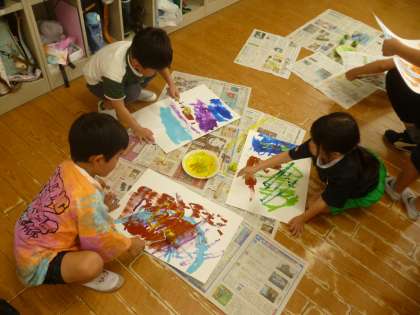 移動中、お友だちと接触して絵の具を相手の服につけないようにも気をつけていました。
