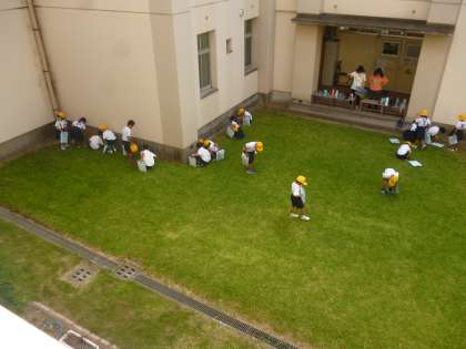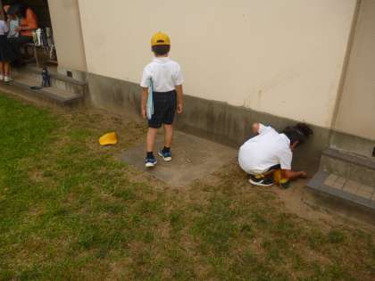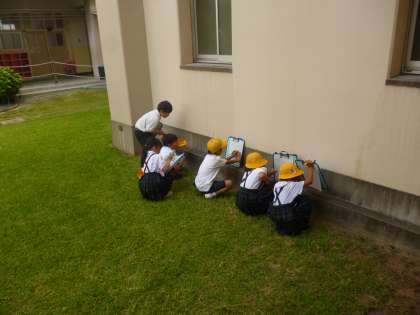 1年 なつを さがそう 公開日 2025/09/04 更新日 2025/09/04 1年 1年1組では生活科「なつを さがそう」を学習しています。教室で観察カードのかき方を確認しました。たとえば「いろ ちゃいろ」ではなく「いろは、ちゃいろです。」と文章で記録するように努めます。 それでは、中庭に出て、夏を探しましょう。 いいね(0)