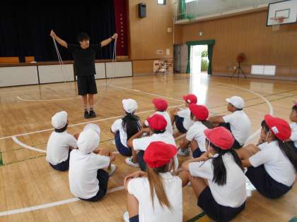 9月4日(木)3・4時限目、6年生がトップアスリートによる「夢・授業」を受けました。講師には、2016年ダブルダッチの世界大会で優勝した、大島稔史様にお越しいただきました。大島様は、関西中心にダブルダッチパフォーマーとして活躍しています。
