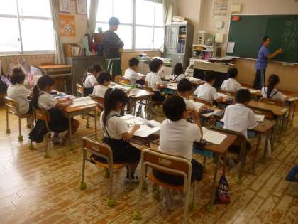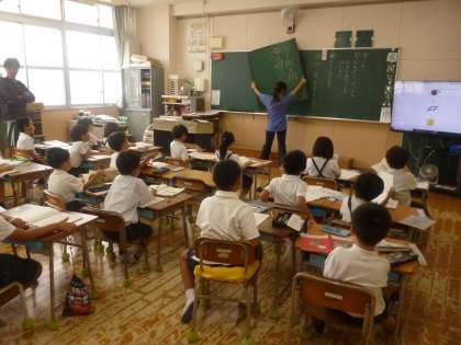 1年 かんじの はなし 公開日 2025/09/24 更新日 2025/09/24 1年 1年1組では国語科「かんじの はなし」を学習していました。「山」や「木」のように、形から出来上がった漢字について調べています。「川」は縦に3本並んだ波線からできていることがわかりました。「目」は瞳の形からできているようですが、90度傾けて見る必要があるので、先生が小黒板を持ち上げて傾けていました。 いいね(0)