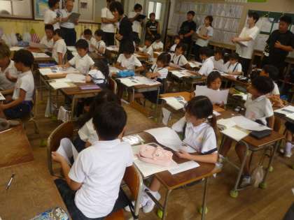 2年 ビーバーのひみつを 伝えよう 公開日 2025/09/26 更新日 2025/09/26 2年 2年生は国語科「ビーバーの大工事」を学習しています。これまで、説明文の順序に気をつけて重要な言葉を確認しながら読み取ってきました。本時では、ビーバーになり切って、秘密の中から一番「すごい」と思ったことを自慢する文を考えました。 ビーバーの「長時間水中を潜る力ところ」「家族で力を合わせてダムを作るところ」……、考えた文章をお友だちと交流して、みんなの前で発表しました。「1・2・3,ビーバー!」 いいね(0)