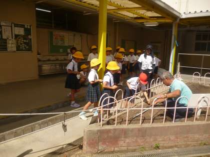 1年 ダイコンの種まき1 公開日 2025/09/30 更新日 2025/09/30 1年 地域の方にご指導いただき、1年生がダイコンの種まきを体験しました。手のひらに入るくらい小さな種が、数か月後には大きなダイコンに育つお話を聞かせていただきました。写真は1年2組のお様子です。 いいね(0)