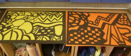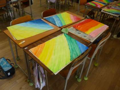 6年 グラデーション 公開日 2025/10/08 更新日 2025/10/08 6年 6年1組では図画工作科の時間、グラデーションを描きました。絵の具を使って、色彩・色調のぼかし、濃淡度を活かして表現しました。 この後、前時にカッターナイフを使って枠を切り抜いた黒画用紙を被せます。素敵な作品が想像できます。 ※子どもたちが活動する姿を撮れず、申し訳ありませんでした。 いいね(0)