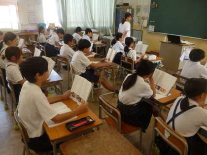5年2組では国語科「和の文化を受け継ぐ」を学習しています。本時では和の文化を支えている人に焦点を当てて読み取っていきました。グアム出身の和菓子職人ビル・リオングレローさんの思いも参考にしながら話し合っていました。