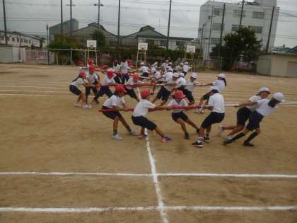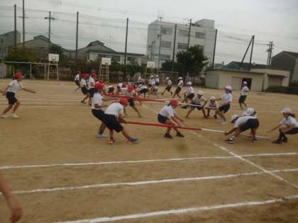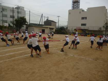 5年 運動会の練習 団体競技「棒引き」 公開日 2025/10/16 更新日 2025/10/16 5年 5年生が団体競技「棒引き」を練習していました。1本の棒を巡って引っぱり合う、子どもたちの力強い応酬が観られました。 いいね(0)