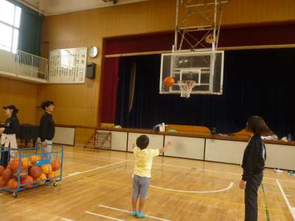 「フリースロー」は、ミニバスチームに所属している人が有利だったでしょうか。低学年の子もがんばってボールを高く投げていました。