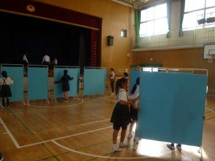 5年 就学時健康診断の準備 公開日 2025/10/28 更新日 2025/10/28 5年 10月29日(水)、令和8年度に鶴町小学校へ入学予定の児童が健康診断を受けるために来校します。明日の就学時健康診断に向けて、5年生が会場の準備をしてくれました。みんな一所懸命動いてくれたので、あっという間に会場ができ上がりました。5年生のみなさん、ありがとうございます。 いいね(0)