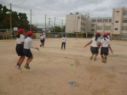 6年 なわとびを使った運動 公開日 2025/11/04 更新日 2025/11/04 6年 6年1組では体育科の時間に、縄跳びを使った運動に取り組んでいました。かけあし跳びのリレー、2人組で二人跳び、大縄を使った八の字跳びをしていました。八の字跳びは特に力が入っていて、「1・2・3、……。」数を数える声に力がこもっていました。 いいね(0)