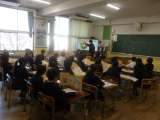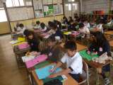 2年生は図画工作科「まどを あけたら」に取り組んでいました。色画用紙を2枚重ねて、外側を窓のように切り開くと、中から楽しい絵が飛び出します。