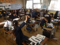 3年1組では算数科の時間三角定規の角の特徴を調べていました。まずは、三角定規をノートにあてて角を写し取りました。2種類の三角定規、どちらにもとても特徴のある角がありました。何と言ったでしょうか。