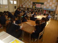 1年1組では書写「できるようになったよ」を学習しています。かきはじめとかきおわりの「とめ」「はらい」「はね」に気をつける、ひらがなの「おれ」「まがり」「むすび」……、書写で1年間習ったことを思い出して練習していました。