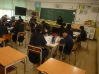 6年2組では音楽科の時間、卒業式で歌う2部合唱曲「旅立ちの日に」のパート分けを話し合っていました。高音と低音、どちらのパートにも大切な役割がありますが、人それぞれ出しやすい高さがあるようです。