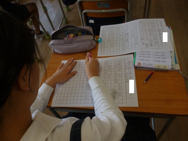 できた児童から先生に〇をつけてもらいます。