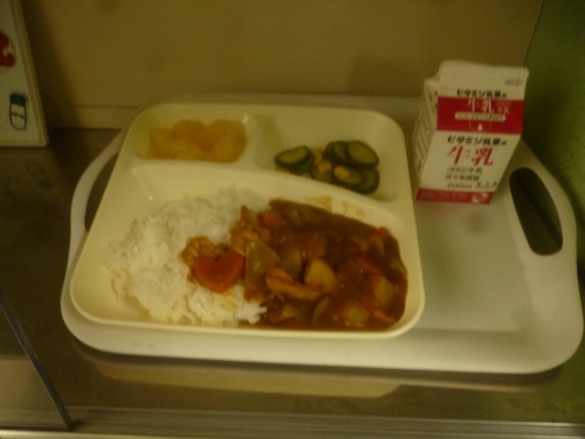 2月26日(木)の給食は、チキンレバーカレーライス・牛乳・きゅうりとコーンのサラダ・洋梨(缶詰)です。