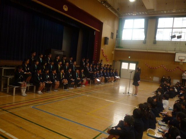 続いて、6年生から在校生へお礼の言葉の呼びかけ、歌「絆」が贈られました。