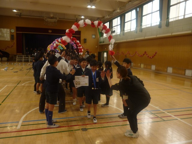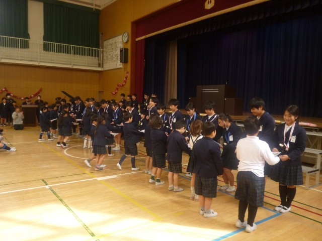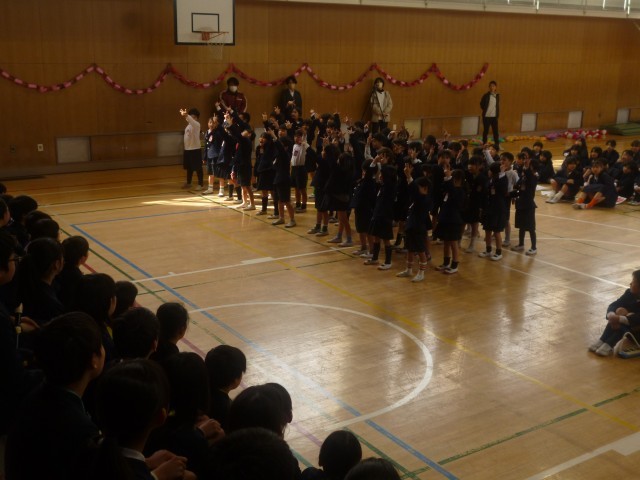 在校生が作った花道を通って、6年生が退場します。何人もの在校生や6年生が、目に涙を浮かべていました。感謝の気もちを伝え合って、6年生の立派な姿が在校生へ伝えられた、祝う会でした。6年生の皆さん、3月18日(水)は素晴らしい卒業式にしてほしいと思います。
