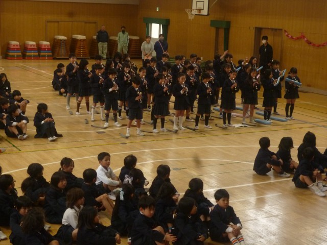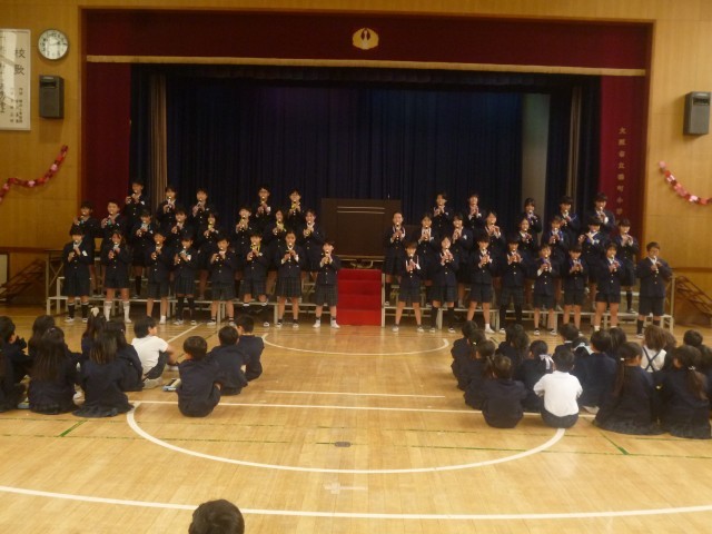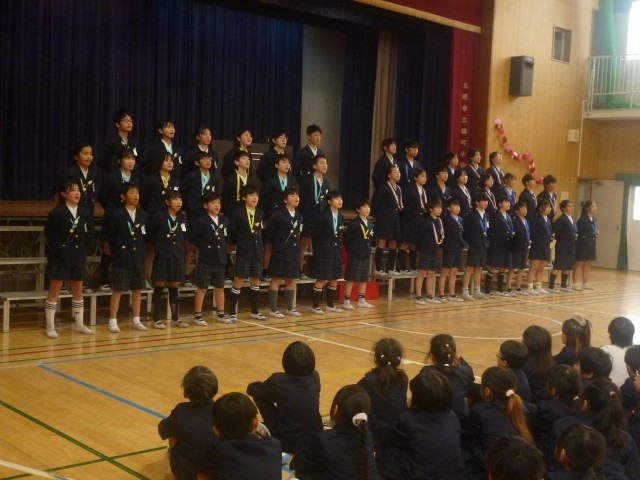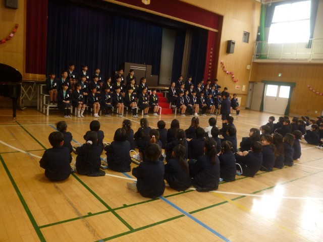 4年生からは歌「明日へつなぐもの」が、5年生からは歌「沈丁花」が贈られました。