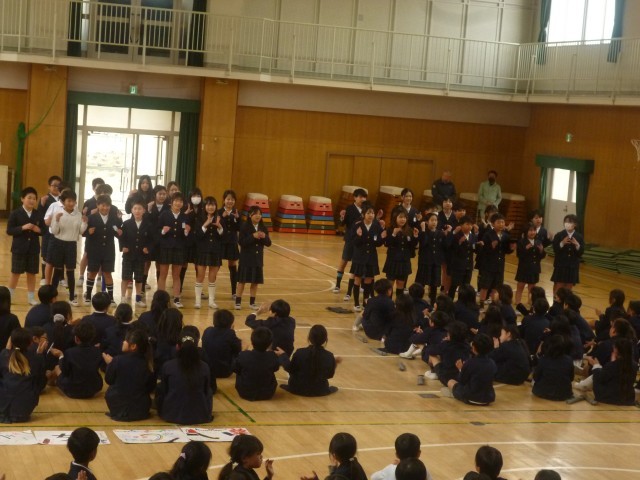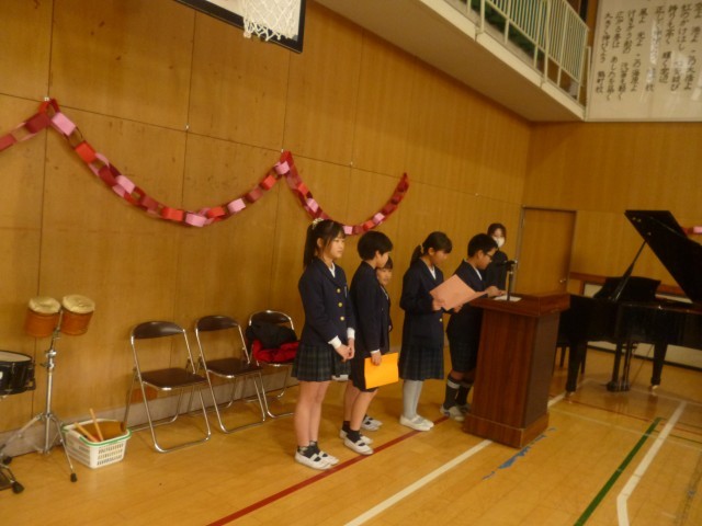 3月6日(金)5時限目、卒業を祝う会がありました。3月18日(水)の卒業証書授与式には5年生が在校生代表で出席します。在校生全員が集まって6年生を送り出します。