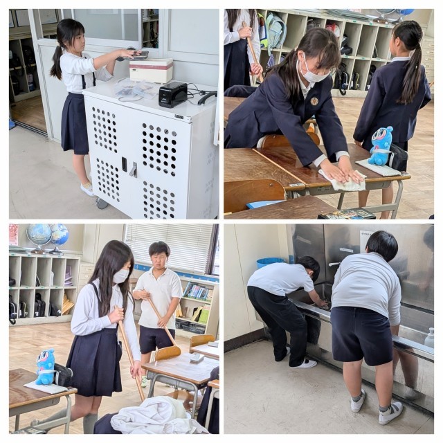 活動にすっかり慣れ、自分の担当場所をてきぱきと掃除できるようになってきました。みんなで協力して教室をピカピカにしています。成長を感じる頼もしい姿です。