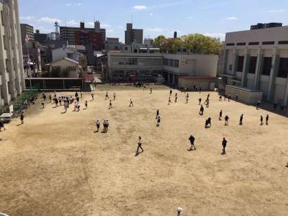 休み時間、とても楽しそうに校庭で遊んでいました。
