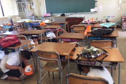 最後に「シエイクアウト」という地震を想定した避難訓練を実施しました。