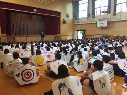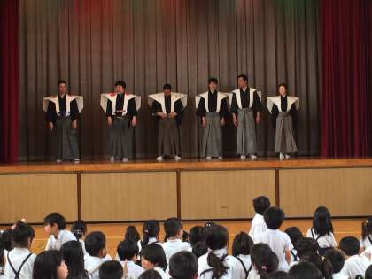 5・6年生は事前に作成した厚紙の裃を付けて臨みました。