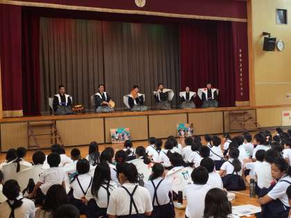 今日は大阪市の文化芸術育成事業の一環で、能楽師の方々が来て下さり能の鑑賞と体験をしました。