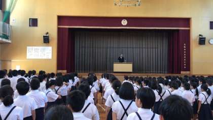 始業式では「二学期の目標(めあて)をしっかりもって楽しく過ごしましょう!」とお話ししました。