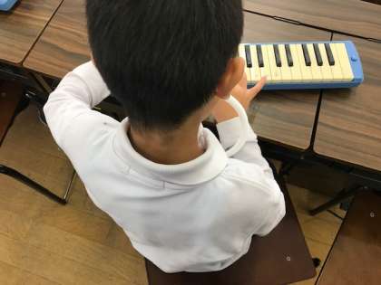 音楽の時間に、「チューリップ」の合奏練習をしました。最初はドレミの確認からはじまり、何度も練習して一曲最後まで弾けるようになりました。鍵盤ハーモニカ・木琴・鉄琴、どの役割の子も上手に弾けて、みんな大満足の様子でした♪