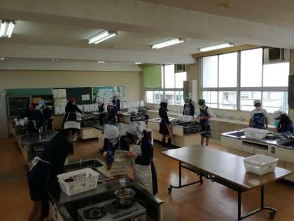 19日(水)に5−2、26日(水)に5−1で調理実習を行いました。