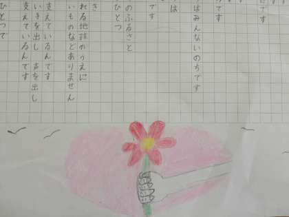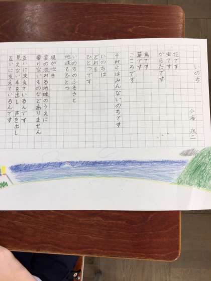 国語科で学習した、小海永二さんの「いのち」の詩から想像を広げ、感じたことを絵に表しました。