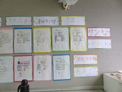 言われると元気がでる言葉、うれしい気持ちになる言葉(フワフワ言葉ということもあります。)などを掲示しています。