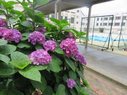 梅雨に入り、校内の紫陽花もきれいに花を咲かせています。