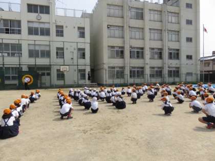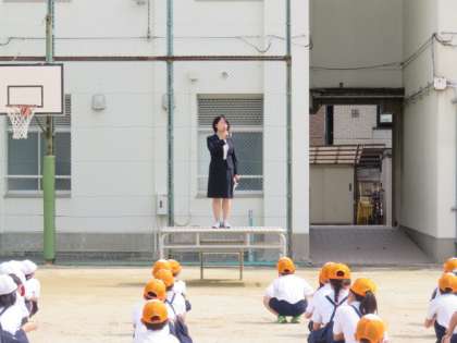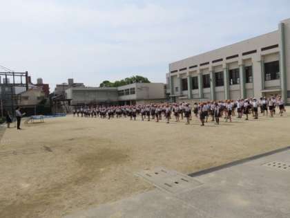 密をさけるため運動場で行いました。暑い中でしたが、全学年態度もよく、校長先生の話をしっかりと聞くことができました。