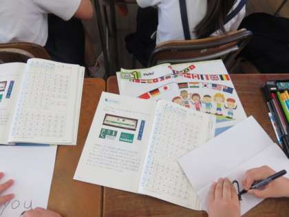 「What is your name?」とジョン先生かが聞き、「My name is 〜」と子どもたちが答えていきます。