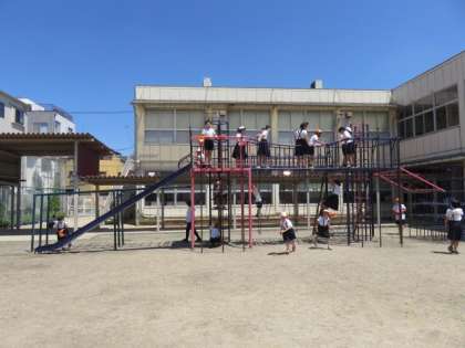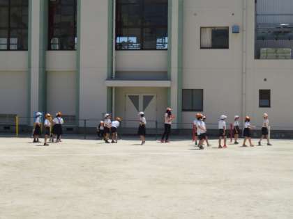 教室は空調機があり、涼しいですが、天気が良い日の運動場は暑くなってきています。
