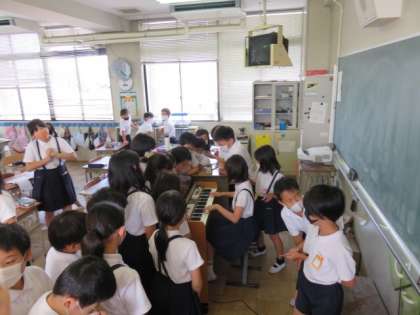 休み時間、職員室にオルガンの音色が聞こえてきました。