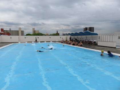 6年生は人数が少ないので間隔を大きくとり、たくさん泳ぐことができました。
