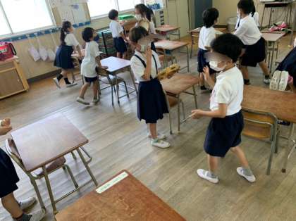 音楽では、「たん」と「た・た」の違いを歌に合わせてリズム打ちしました。