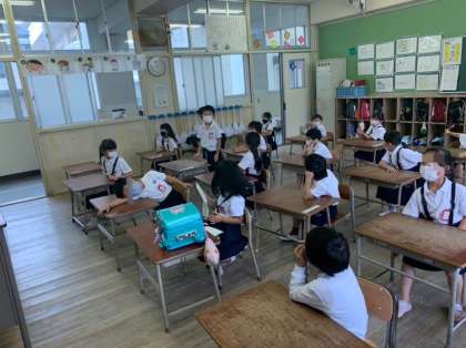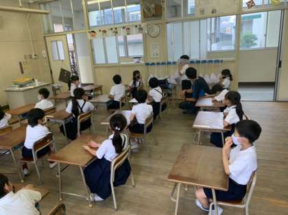 どのように自己紹介をしたのか、1年1組の教室に戻ってきてから再現してもらいました。みんなに伝わるような声で言うことができていました。