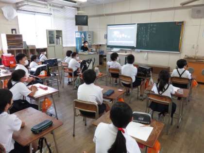 密を避けるため、講堂ではなく各教室にたてわり班が集まり行いました。