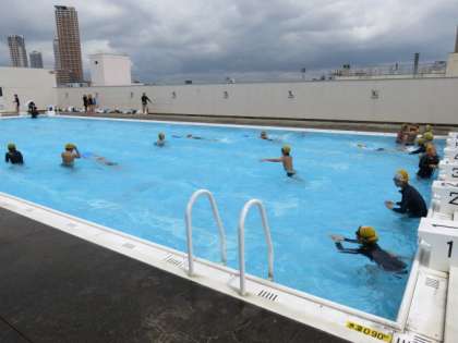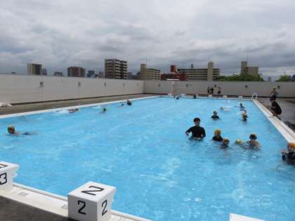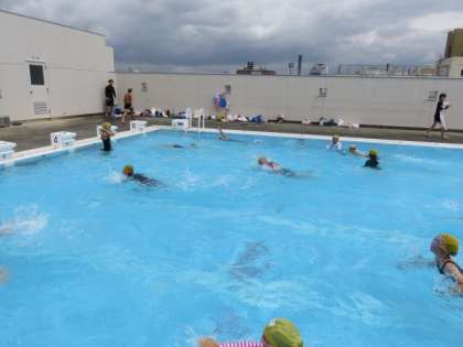 限られた時間の中、子どもたちはフォームを意識してなんども泳いでいます。