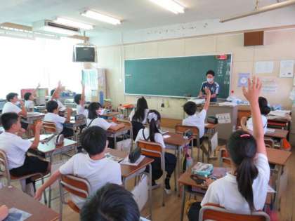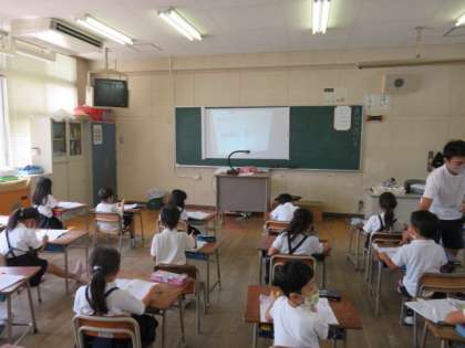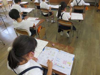 早速授業をしている学級や夏休みの宿題の答え合わせをしている学級、一学期の学習内容確認のテストをしている学級など様々でした。